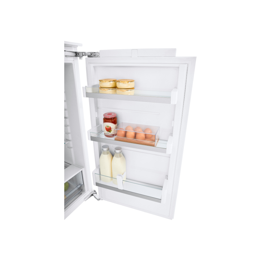 De Atag KD85102AD is een inbouw koelkast - (102 cm), energielabel d, totaal inhoud 160 liter, deur op deur montage met soft-close, zelfsluitend binnen een hoek van 20°,, heldere led binnenverlichting, led display, snel koelen functie, 5 draagplateaus, 3 deurbakken.