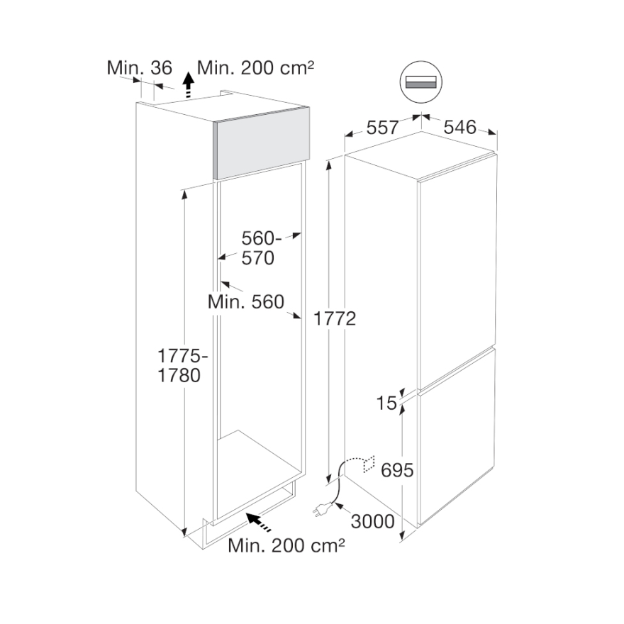 Inbouw koelvriescombinatie met NordicFresh en NoFrost (178 cm)