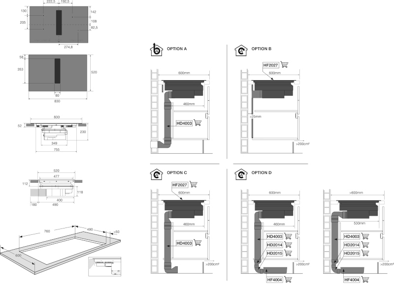 Pelgrim IKR8083F - Inductiekookplaat met afzuiging (83 cm) A +