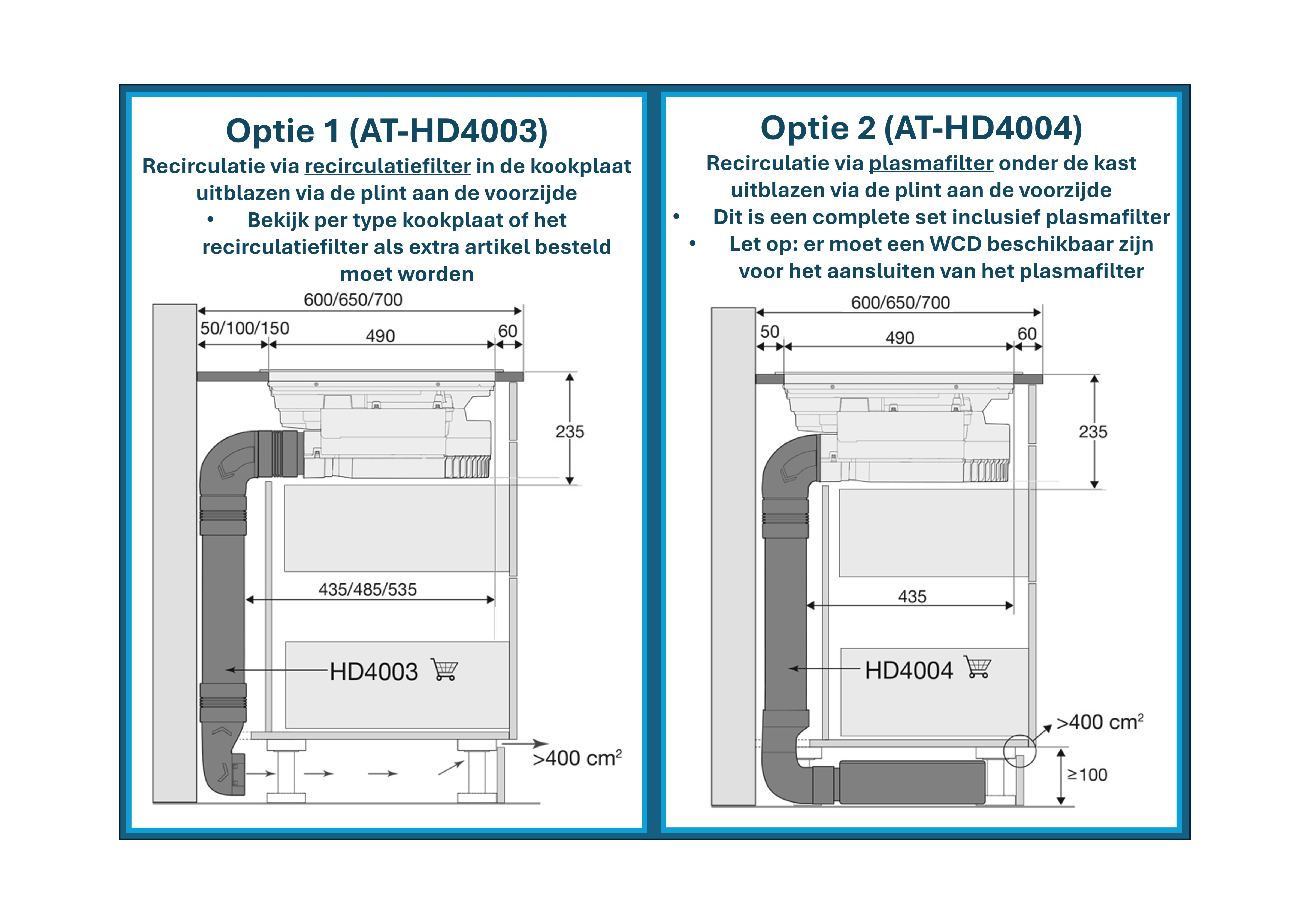 - AT-HD4003: Naber complete luchtgeleidingsset bij gebruik van het recirculatiefilter in de kookplaat met afzuiging.