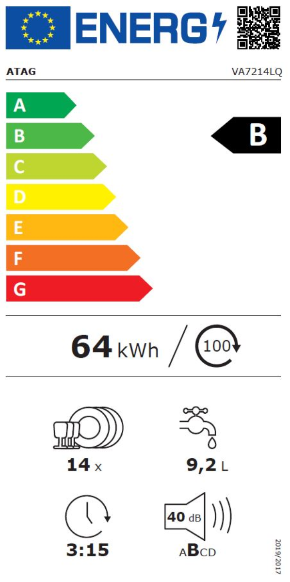 Atag VA7214LQ - Volledig geïntegreerde XL vaatwasser (60 cm) B