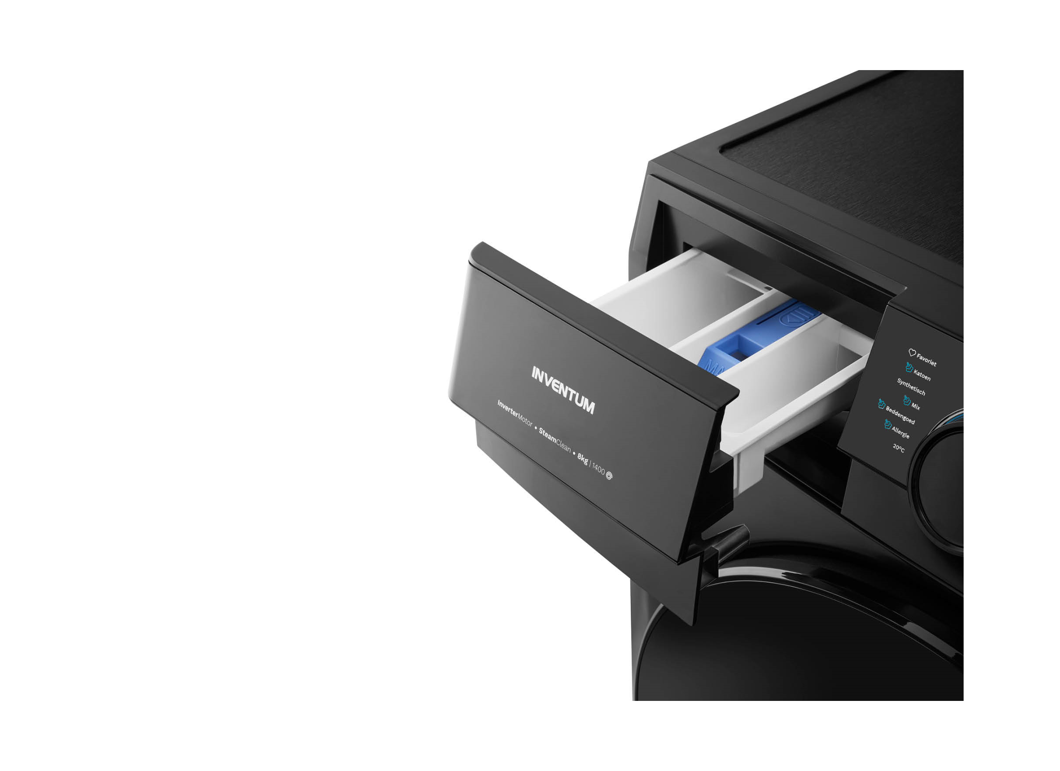 De Inventum wasmachine VWM8010B met energieklasse A-10% heeft een vulgewicht van 8 kg en is daarmee geschikt voor de was van 3 tot 4 personen. Je hebt de keuze uit 14 wasprogramma's met temperaturen van 20°,C tot en met 90°,C. De machine centrifugeert tot 1400 toeren, afhankelijk van het wasprogramma en valt met 72 dB in de categorie stil. Wil je nog meer rust? Gebruik dan de Stil-functie. Naast de meer gebruikelijke wasprogramma's heeft deze machine ook een aantal handige extra's, zoals SteamClean en trommelreiniging. Daarmee heb je gegarandeerd een schone, frisse en hygië,nische was. Gebruik je vaak hetzelfde programma en instellingen? Maak daar met 1 druk op de knop je Favoriete programma van op je wasmachine. Lekker makkelijk! Zo ben je nog sneller klaar met de was.